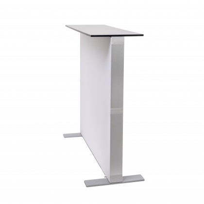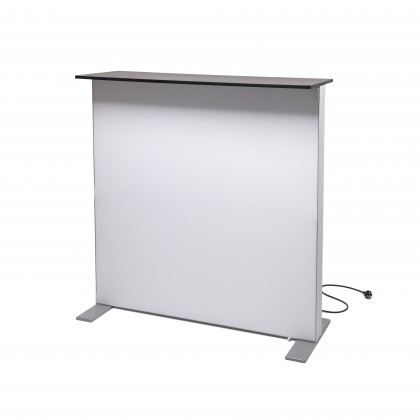 Completează-ți standul cu un element de impact: Brightbox Counter Fold & Go. Această masă de recepție nu este doar un punct de lucru funcțional, ci un sistem de afișaj iluminat care atrage privirile vizitatorilor de la distanță. Cu o înălțime de peste un metru, oferă o prezență impunătoare și profesională în orice showroom sau spațiu expozițional.